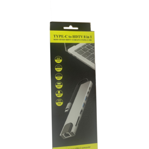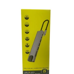 Hytech HY-USBC82 4K@30Hz Gri Metal 2xUSB3.0, 1xUSB2.0, 1000Mbps PD, TypeC Data, SD/TF Kart Okuyucu Type C Adaptör