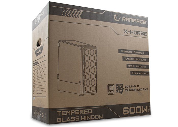 Rampage X-HORSE Tempered Glass 600W 80 Plus Bronze 4*Rainbow Fan 1*Usb 3.0 1*Usb 2.0 Gaming Kasa